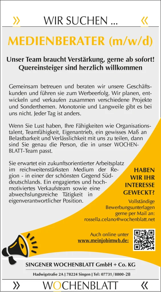 „Das Wochenblatt-Team freut sich über Ihre Bewerbung."